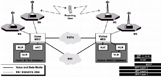 除了空中接口,在無線系統(tǒng)的設(shè)計(jì)中支持無線用戶的移動性是主要的挑戰(zhàn)。無線系統(tǒng)對信令的要求明顯要比實(shí)現(xiàn)類似功能的地上有線系統(tǒng)要苛刻得多。結(jié)果使得無線網(wǎng)絡(luò)必須組合更先進(jìn)更全面的信令控制系統(tǒng)。即使移動單元在它的歸屬網(wǎng)絡(luò)中,系統(tǒng)也要隨時跟蹤它的位置,因?yàn)楹羧、認(rèn)證和傳遞功能需要知道它當(dāng)前所處的位置。系統(tǒng)運(yùn)營商提供給用戶的移動等級有越來越復(fù)雜的趨勢,這就要求在系統(tǒng)間必須應(yīng)用復(fù)雜的信令才足以支持漫游、登記和路由尋找等功能。這就是無線系統(tǒng)普遍選擇SS7作為信令協(xié)議的原因。