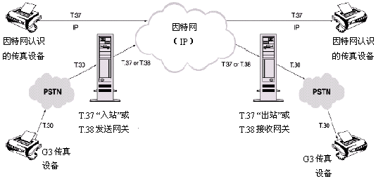 在T.37術(shù)語中,因特網(wǎng)傳真(Ifax)設(shè)備能夠通過一個出站設(shè)備向傳統(tǒng)連接到PSTN的傳真機(jī)發(fā)傳真,或者通過一個IP網(wǎng)直接發(fā)送到另一個因特網(wǎng)傳真(Ifax)設(shè)備。