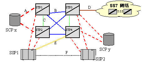 A鏈路是訪問鏈路,是指連接SSP或SCP到STP的鏈路。圖中紅色線條所示。