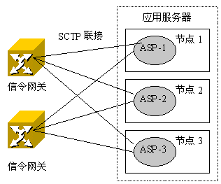 ASP是AS的一個進(jìn)程實例。ASP可以是應(yīng)用服務(wù)器的激活態(tài)進(jìn)程,也可以是備用態(tài)進(jìn)程。網(wǎng)關(guān)控制器(MGCs)、IP SCPs或IP HLRs進(jìn)程(或進(jìn)程實例)就是ASP的例子。一個ASP包含一個SCTP端點(diǎn),并可以配置成在一個以上的AS內(nèi)處理信令流。
