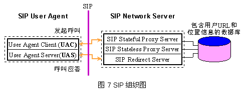 SIP包含兩個基本組件:SIP用戶代理(SIP user agent)和SIP網絡服務器(SIP network server)。SIP通信將在這兩種組件進行。如下圖7所示: