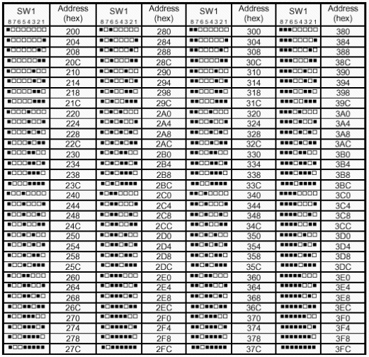 4個(gè)連續(xù)的I/O地址,可以在000h到3FCh范圍內(nèi)選用任意4字節(jié)的地址空間。