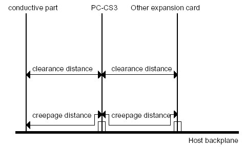 如果安裝的其他適配卡使用或者產(chǎn)生危險(xiǎn)的電壓,要求保持最小的漏電和短路距離,具體數(shù)值在下面表格中有描述。本文檔中所指的危險(xiǎn)的電壓是指峰值超過42.4V交流電或者60V的直流電。如果還有任何疑問,可以在安裝其他適配卡之前征求工程師的建議。