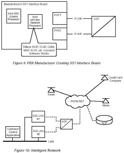 SS7產(chǎn)品可以被用來建立SS7網(wǎng)絡元素(NEs)和高級智能網(wǎng)絡(AIN)平臺,比如: