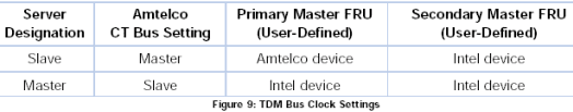 圖9列出了系統(tǒng)中的主控服務(wù)器和受控服務(wù)器的TDM總線的時鐘設(shè)置,